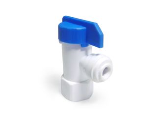 Шаровой кран AquaPro ABVL-JC-A4 выполнен из полипропилена белого цвета с ручкой синего цвета. Внутри корпуса крана расположен шаровой механизм, который открывает или перекрывает поток воды в/из накопительной емкости при помощи ручки, расположенной наверху крана. Устанавливается кран на накопительную емкость при помощи внутренней резьбы и подключается к системе фильтрации гибкой трубкой.